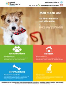 Eine elektronische Kennzeichnung ist für alle Hunde in Luxemburg vorgeschrieben. Diese Kennzeichnung muss innerhalb von 4 Monaten nach der Geburt des Hundes oder in dem Monat, der auf den Erwerb / die Einfuhr des Hundes folgt, vorgenommen werden, sofern dies nicht bereits geschehen ist.