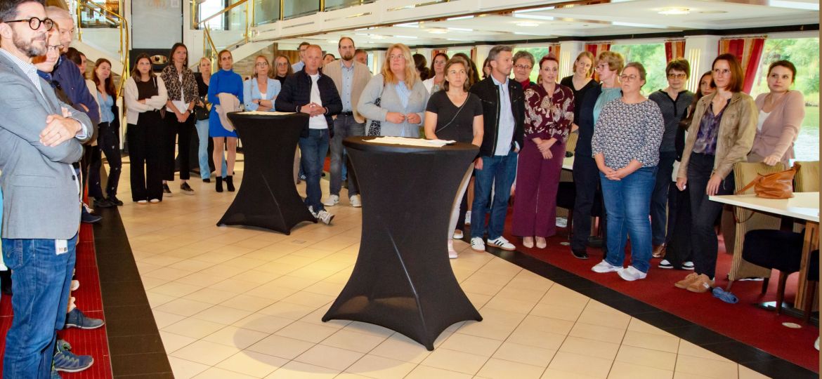 Gemittlecht Zesummesinn mam Léierpersonal um Schëff „MS Princesse Marie-Astrid“